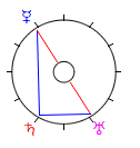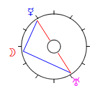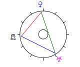 The above oppositions form the base of five Ambivalence Triangles which – at their blue angles, the 3rd pole of the triangle – suggest an ideal world. As the Hubers say in Aspect Pattern Astrology (p155), “it indicates a kind of switch point in the correct management of the ambivalent energies.”