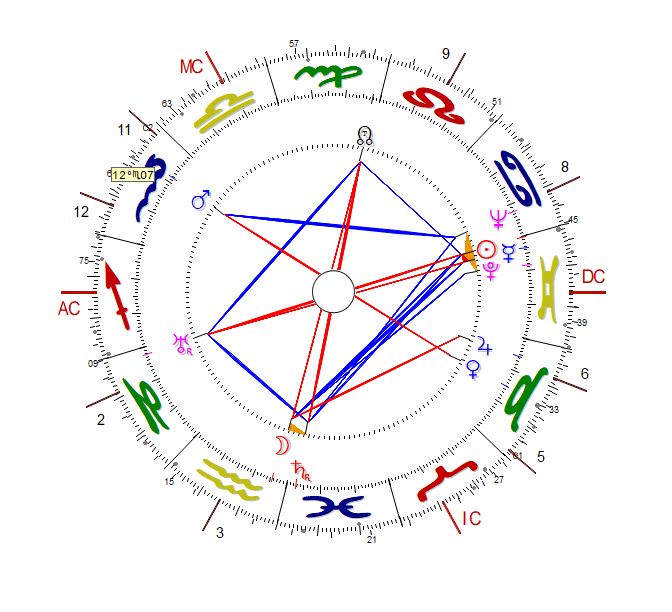Otherwise, his opposed Mars had a way out via the trine to Neptune, where all the water in him suited Cancer and he could indulge his creativity.