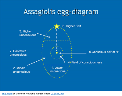 The last source of theory in my work researches the process of spiritual growth leading to wholeness of the personality known as Individuation theory discovered by Carl Gustav Jung. And in this particular area we’re talking about Transpersonal development by selective reception in the individual of the super-rational. And for that we are supported by Roberto Assagioli’s work in Psychosynthesis in which is shown at the top his egg diagram (6) in which an individual can receive transpersonal spiritual influences.