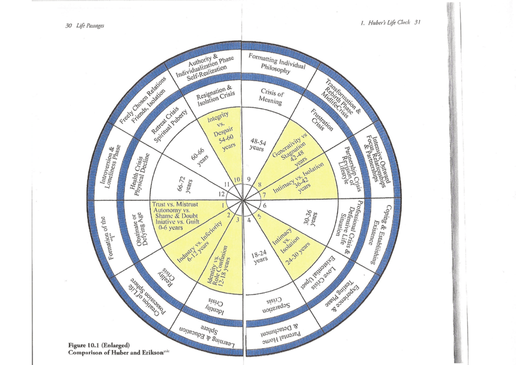 The sources are: Huber, Bruno and Louise, Life Clock. The Huber Method of Timing in the Horoscope, 2006. And Erik Erikson’s Childhood and Society, 1993. Aspect Pattern Astrology, Hubers, (color version) 2019.