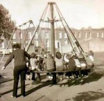 It reminds me very much of one of these roundabouts, the sort I used to play on when a child, and which could give a very exciting ride indeed if it was rocked from side to side as it went round and round. Before I found the picture, I’d noticed Saturn in the 2nd house of Charles’ chart, appearing to hold the edge of the conical “Witches Hat” just like the woman in this picture, maybe steadying it.