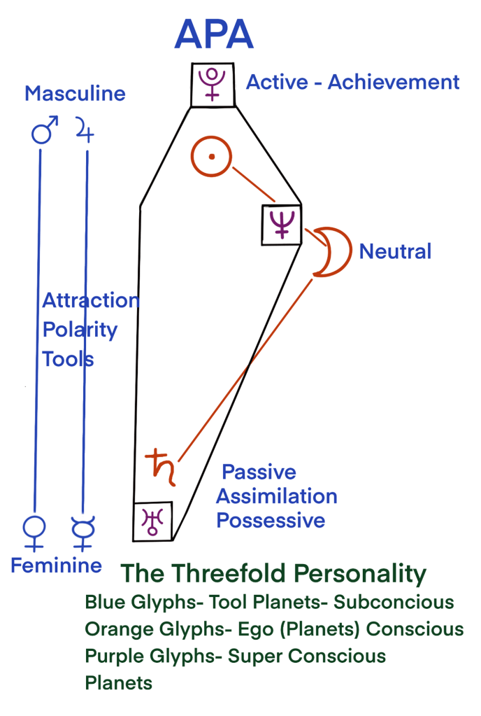 The figure graphically illustrates the interaction between three types of planetary energies. And shows a hierarchy for development of personality.
